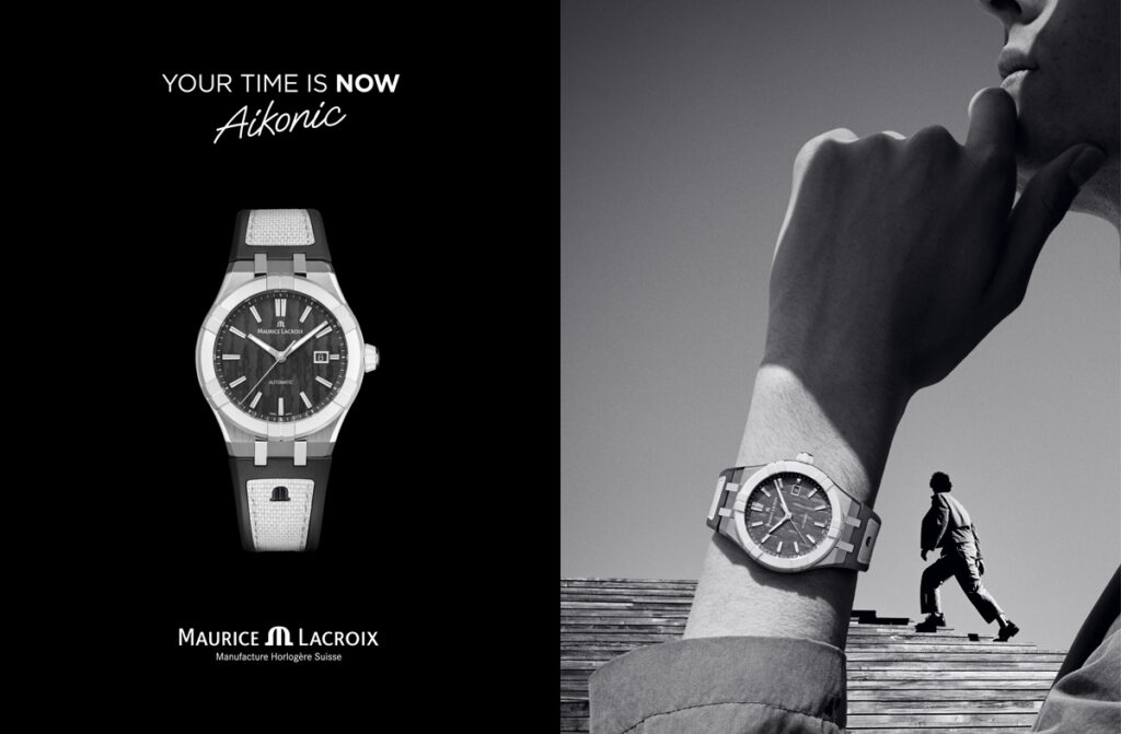 Campagne de lancement 360° pour la collection Aikonic de la marque horlogère Maurice Lacroix : création de contenus lifestyle, campagne publicitaire multi-supports, supports de vente et display, logo animé et direction artistique.